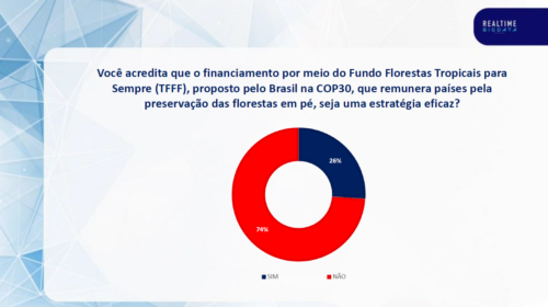 Pesquisa RealTime Big Data, feita a pedido de Crusoé e O Antagonista, mostra que a maioria dos brasileiros não acredita na eficácia do Fundo Florestas Tropicais para Sempre (TFFF, na sigla em inglês), aposta do governo Lula para a COP30.