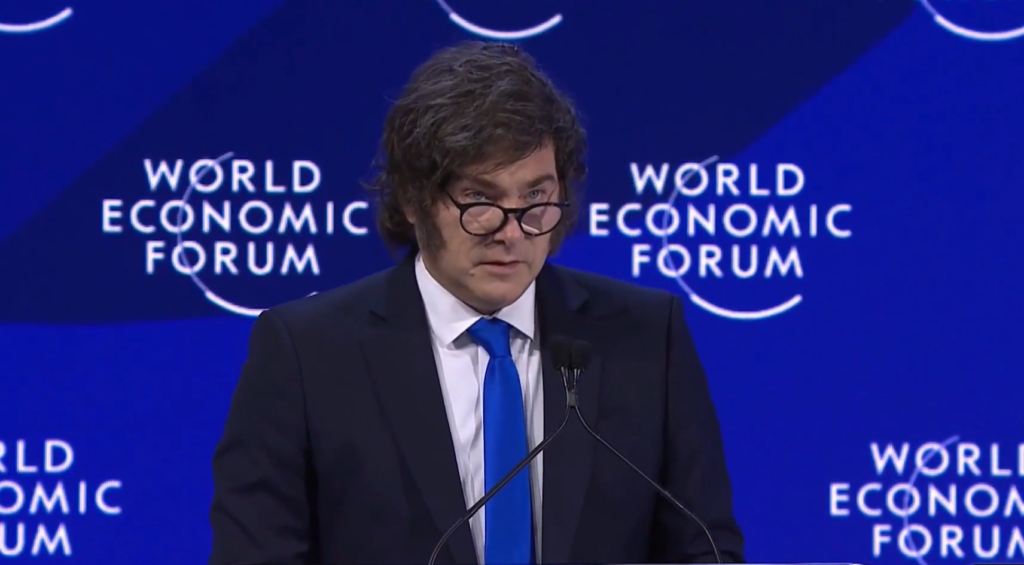Em Davos, Milei também reforçou a defesa do livre comércio internacional e atacou políticas protecionistas, se apresentando como defensor de mercados abertos, mas sem atacar nenhum país em especial.