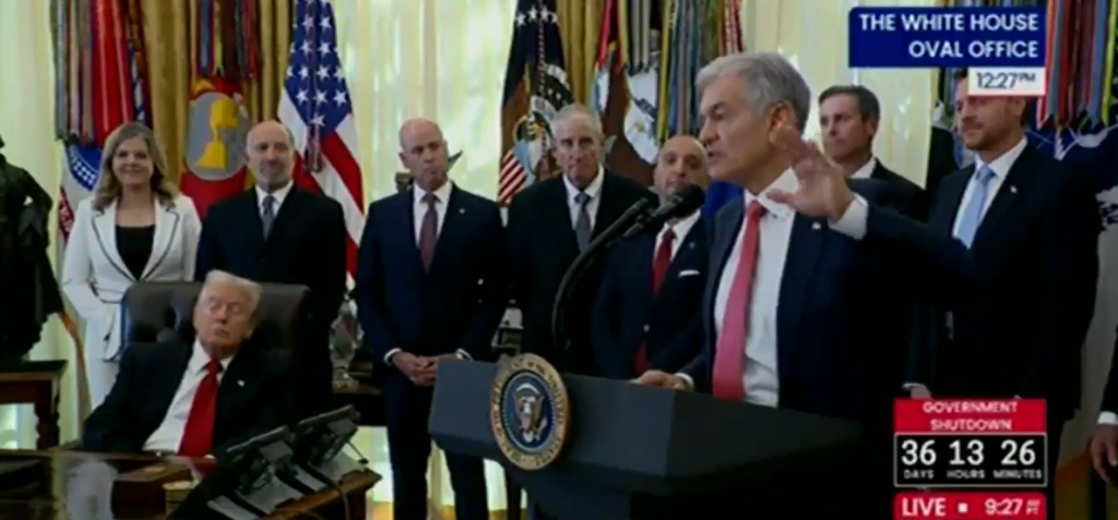 Trump foi flagrado de olhos fechados (foto) durante o anúncio sobre a redução dos preços de medicamentos populares para perda de peso na última quinta-feira, 6.