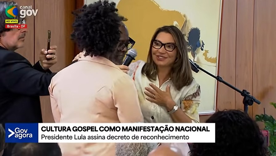 Primeira-dama participou de assinatura de decreto para valorizar a música dos evangélicos
