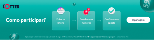 A Lotto Direct Limited opera a thelotter.com. A Lotto Direct Limited é licenciada pela Malta Gaming Authority. Referência da Licença MGA/CRP/402/2017. Somente para acima de 18. Jogos de azar podem ser prejudiciais se não forem controlados. Jogue com responsabilidade. Para mais informações, acesse https://www.rgf.org.mt/
