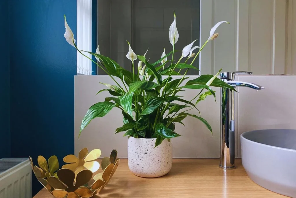 O lírio-da-paz no banheiro