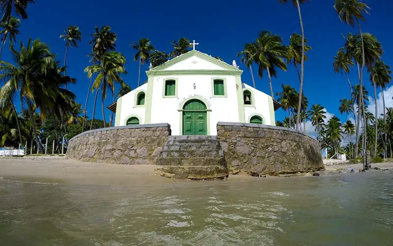 Não apenas a natureza encanta em Carneiros. A famosa Igreja de São Benedito, construída no século 18 à beira-mar, é um verdadeiro cartão-postal.
