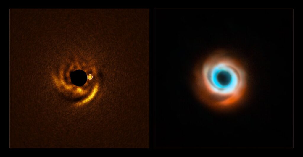 O sistema ERIS acoplado ao Very Large Telescope permitiu que astrônomos distinguissem o brilho específico do planeta e do material circundante, destacando a característica singular da observação direta em meio à luz da estrela central.