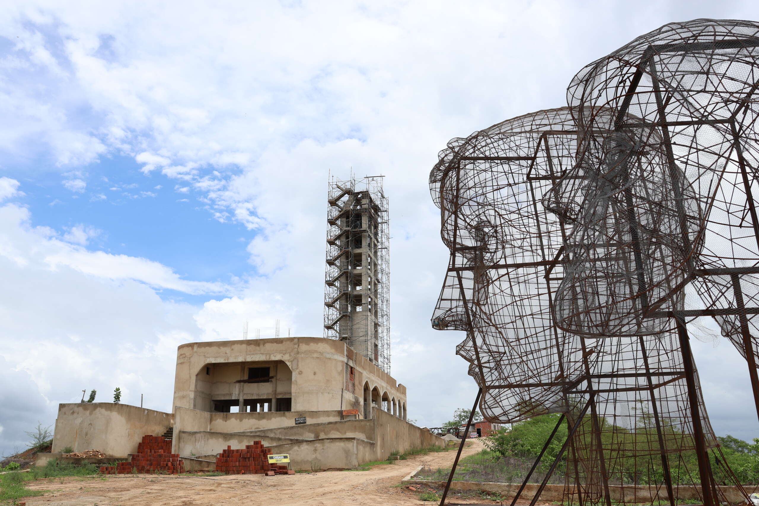 Localizada no Serrote do Cágado, a obra iniciada em 1984 permaneceu sem cabeça devido a questões financeiras, mas agora completa seus 36 metros de altura, com previsão de entrega final em 2026.
