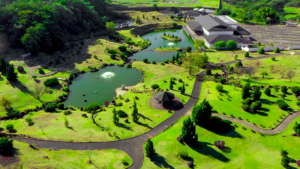 O complexo reúne jardins, lago, áreas de convivência e muito mais.