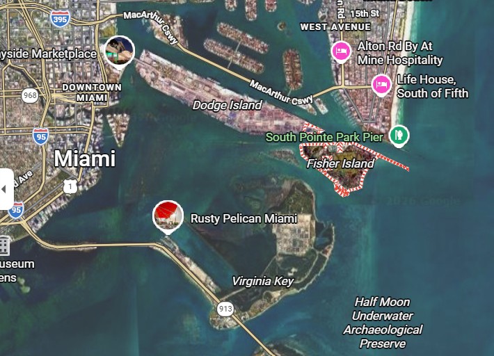 Fisher Island abriga uma comunidade pequena e extremamente restrita, que atrai empresários, celebridades e investidores internacionais.