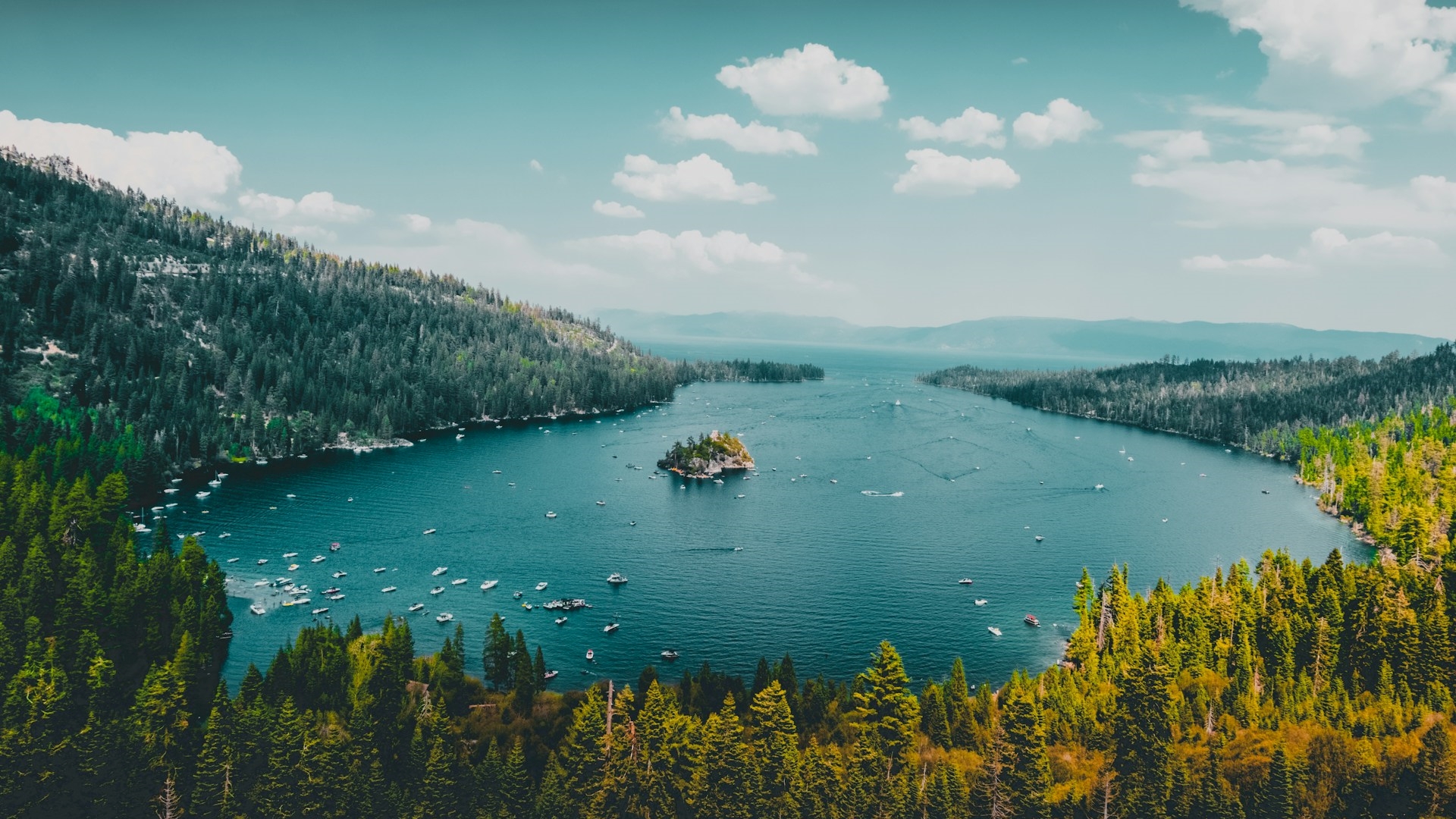 Trata-se do lago Tahoe, que é conhecido por suas águas cristalinas e pelas paisagens exuberantes que o cercam, e consegue atrair visitantes tanto no inverno quanto no verão, sendo amplamente procurado para a prática de esportes e de atividades ao ar livre em ambas as estações.