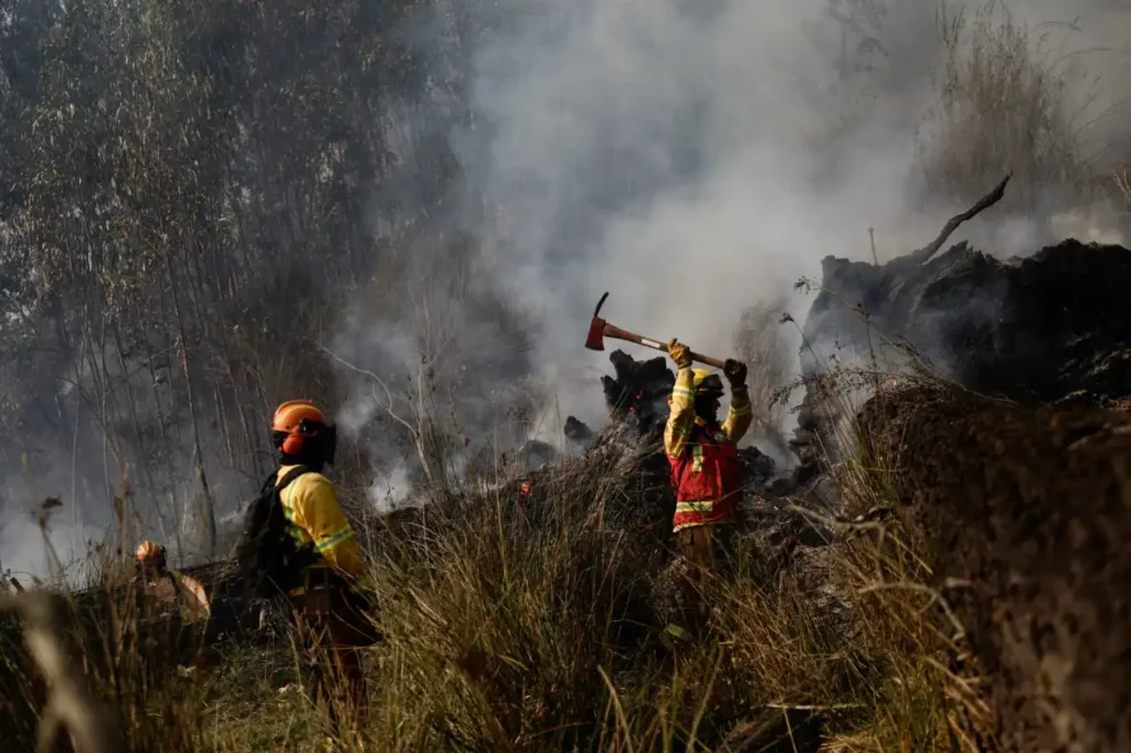 Com temperaturas atingindo recordes de 38°C e ventos fortes, as chamas se propagaram rapidamente. Essas condições tornaram o combate aos incêndios um grande desafio para as equipes de emergência.