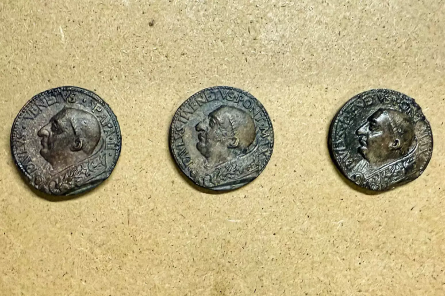 As medalhas, decoradas com a efígie do papa Paulo II, foram encontradas dentro de um vaso de terracota sob as fundações do Palazzetto Venezia.