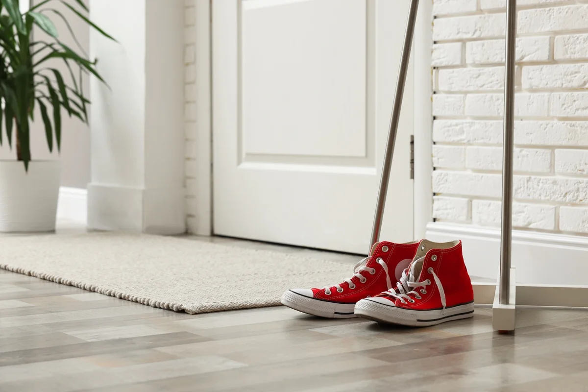 Deixar os calçados no genkan simboliza a remoção de energias impuras do exterior, preservando a harmonia e serenidade dentro de casa.